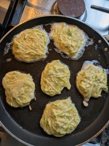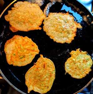 In a skillet heat oil and with a spoon put a small batches and fry on the 2 sides.